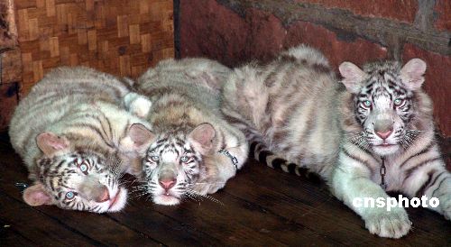 5月30日,重慶野生動物世界工作人員把2004年9月出生的3只小白虎和2005年元月出生的7只小熊獨自關(guān)在各自的小屋里,馴化它們的表演能力,以期達到在各種環(huán)境下一招制勝的本領(lǐng)。作者:陳仕川