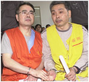 中午12時(shí)許,審判長(zhǎng)宣布暫時(shí)休庭。當(dāng)被告被帶下法庭時(shí),他們的家人急忙跟出法庭,請(qǐng)求允許給兩被告送些飯菜,被獲許。本案預(yù)計(jì)審理3天。