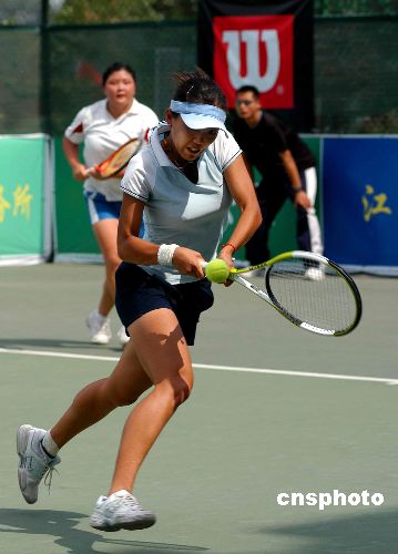2005年6月3日,湖南籍選手湘妹組合于瑩/楊舒靜負(fù)于對(duì)手,無(wú)緣2005國(guó)際女子網(wǎng)球挑戰(zhàn)賽女雙決賽。作者:劉建民