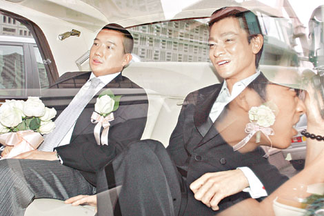 中新網(wǎng)6月8日電 據(jù)香港媒體報(bào)道,杜汶澤與田蕊妮昨日結(jié)束愛情長跑注冊(cè)結(jié)婚,劉德華現(xiàn)身,幫杜汶澤過關(guān)娶老婆。在宣誓一刻,新娘子田蕊妮感動(dòng)得泣不成聲,在過百位賓客見證下,步入人生另一階段,整個(gè)婚禮耗資近百萬元!