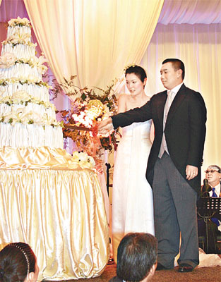 中新網6月9日電 據香港媒體報道,杜汶澤與田蕊妮前晚筵開五十席婚宴,廣邀圈中好友。期間新娘子田蕊妮拋花球時,竟“內定”由楊千嬅去接,千嬅上臺接過花球后,感動得淚灑當場。