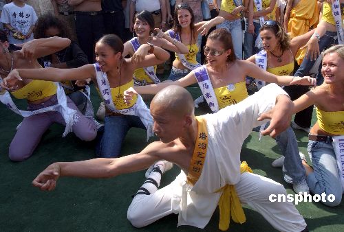 6月12日下午,來自世界各地的2005國際旅游小姐來到鄭州境內(nèi)的登封少林寺,感受了一下中國功夫的魄力,尖叫、贊嘆、驚奇、神秘,少林寺迷住了她們。作者:馬健