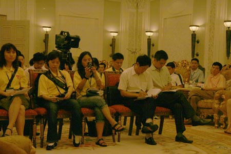 在會見儀式上,黃奇帆副市長向來訪的各地媒體介紹了重慶市自從直轄以來發(fā)生的一些顯著的變化以及取得的重大成就。另外,他還介紹了重慶三峽移民工程的進展、當前移民的生活現(xiàn)狀以及對于庫區(qū)國家級貧困區(qū)縣的扶貧工作等。