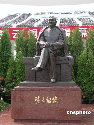 | 六月十三日是陳云誕辰一百周年紀(jì)念日,“陳云同志誕辰100周年紀(jì)念大會(huì)”在北京隆重舉行,胡錦濤發(fā)表重要講話。陳云被譽(yù)為偉大的無產(chǎn)階級(jí)革命家、政治家,杰出的馬克思主義者,中國社會(huì)主義經(jīng)濟(jì)建設(shè)的開創(chuàng)者和奠基人之一,中共和國家久經(jīng)考驗(yàn)的卓越領(lǐng)導(dǎo)人。圖為位于上海市青浦區(qū)練塘鎮(zhèn)陳云故居前的陳云銅像,江澤民題寫了“陳云銅像”。作者:張明新