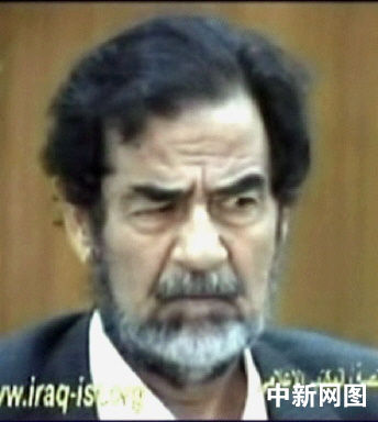 6月13日公布的伊拉克前總統(tǒng)薩達(dá)姆在一不明地點(diǎn)接受質(zhì)詢的電視照片。伊拉克特別法庭表示,一名法官已向薩達(dá)姆提出質(zhì)詢,調(diào)查一什葉派穆斯林聚居的村莊里數(shù)十名男子被殺害事件。1982年,薩達(dá)姆曾在該村逃過一次暗殺。