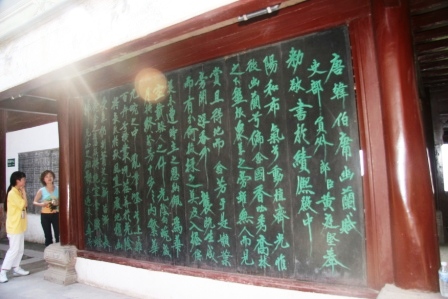 游人流連于書法木刻前