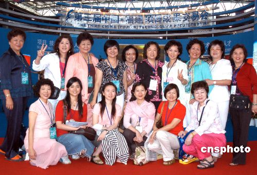 以臺灣高雄婦女會理事長聶惠如女士(后排左四)為團長的臺灣婦女總會代表團一行在六月十七日參加了第二屆海峽婦女創(chuàng)業(yè)論壇后于十八日來到福州金山展覽城參觀第三屆中國·福建項目成果交易會并留影。作者:劉可耕