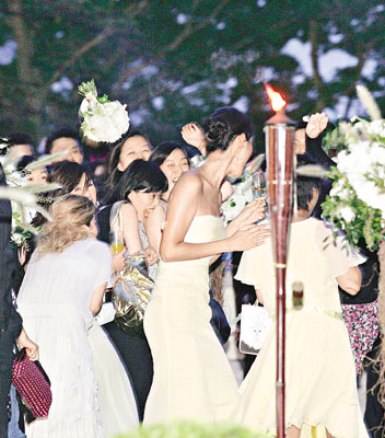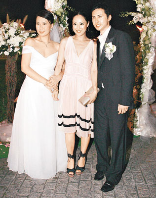 新娘子Stephanie平日為旗下藝人做慣幕后軍師,前晚輪到她當主角,她喜孜孜地說:“婚宴請了二百五十人,擺了二十五桌,Gigi送手鐲、莫文蔚送耳環(huán)、蔣怡送飾物、楊采妮送的好有心思,但我不會講是什么。最開心天心都由臺灣來香港,楊采妮更陪我挑選結(jié)婚戒指,Gigi尋晚陪著我整晚,幫我想問題考新郎。拋花球時我想另外一個圈外人接到,又想天心接到,因為她同男友一齊來!