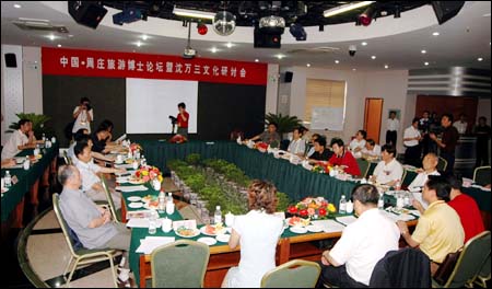 會(huì)上,來自上海、南京、安徽等高校的教授分別闡述了自己的觀點(diǎn),上海師范大學(xué)教授范能船以《沈萬三思維模式和周莊旅游的拓新》為題發(fā)表觀點(diǎn),他認(rèn)為沈萬三“開拓創(chuàng)新-多元開新-穿越時(shí)空造新”的思維財(cái)富,給拓新周莊旅游以無限的啟迪,范能船從打造周莊旅游新產(chǎn)品,拓展旅游新市場(chǎng)兩方面,詳細(xì)闡述了周莊旅游可持續(xù)發(fā)展的新路子。