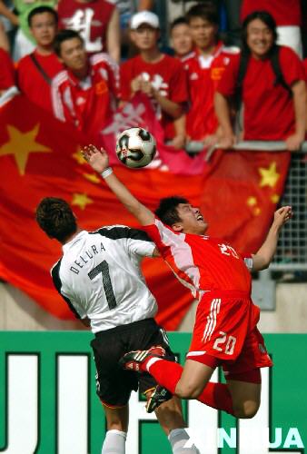 比賽開始后,中國青年隊一上來就打出了氣勢。第4分鐘,中國隊中場球員陳濤為中國隊贏得一個禁區(qū)前沿的任意球,他親自主罰,球越過了人墻后在門前反彈,德國門將來不及撲救球就彈入了大門,中國隊以1-0領先。