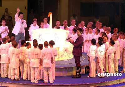 曾寶儀在慈善文藝晚會(huì)上與聾啞兒童在一起 黎明 蘇永康、許志安與小演員共吹“生日蠟燭” | 版權(quán)聲明:凡標(biāo)注有“cnsphoto”字樣的圖片版權(quán)均屬中國新聞網(wǎng),未經(jīng)書面授權(quán),不得轉(zhuǎn)載使用。 |