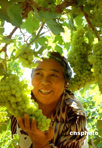 | 6月30日,吐魯番市亞爾鄉(xiāng)戈壁村葡農(nóng)依色拉提·吾秀爾在采摘成熟的葡萄。素有“葡萄王國”之稱的新疆吐魯番,自6月下旬以來,種植的50萬畝無核白、紅葡萄、瑪奶子、翡翠綠、黑葡萄、玫瑰香、白布瑞克等500多個優(yōu)良品種的葡萄相繼成熟并上市。據(jù)了解,2003年吐魯番葡萄獲得國家原產(chǎn)地域產(chǎn)品保護。作者:劉健4509