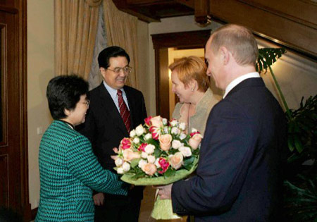 普京表示,非常高興時隔一個多月再次在莫斯科歡迎友好鄰邦中國的領(lǐng)導(dǎo)人胡主席。俄羅斯高度重視發(fā)展同中國的戰(zhàn)略協(xié)作伙伴關(guān)系,兩國在政治、經(jīng)濟(jì)等領(lǐng)域的合作取得了很大發(fā)展。今年兩國還將舉行首次軍事演習(xí)。胡主席此次重要訪問必將有力地推動俄中關(guān)系進(jìn)一步向前發(fā)展。