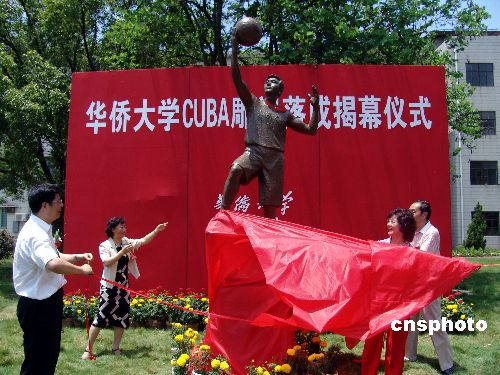 | 七月二日上午,由華僑大學香港校友會捐贈給母校的CUBA標志性雕塑揭幕儀式在該校的春華園內(nèi)舉行。據(jù)雕塑的設(shè)計者——華僑大學藝術(shù)系孫德明老師介紹,該雕塑由華僑大學香港校友會捐資十三點五萬元,歷時一個多月建造的。雕塑高三點四米,以華大學生為原型,設(shè)計成具像、動態(tài)的單手投籃的動作,體現(xiàn)了當代大學生積極向上、拼搏的精神風貌。作者:石勇
