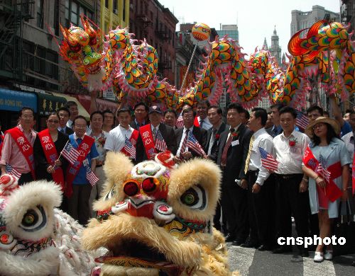 圖:紐約華埠舞獅、龍慶祝美國國慶