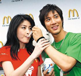 大家為了炒熱訪談氣氛,聊起白靈“激凸”,王力宏說,“女人也可以講激凸嗎?”經(jīng)紀人察覺沒人聊麥當勞廣告,大聲說:“現(xiàn)在變白靈研討會啦?”EQ很高的王力宏扮白臉:“下次有機會想跟她(白靈)見面!