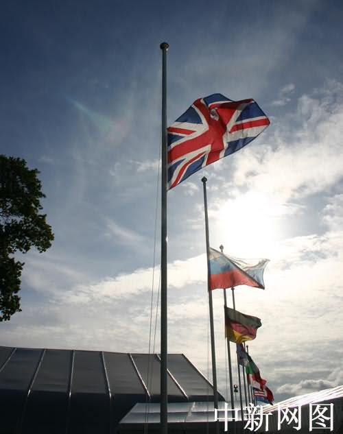 圖為八國集團(tuán)為爆炸事件罹難者降半旗致哀。