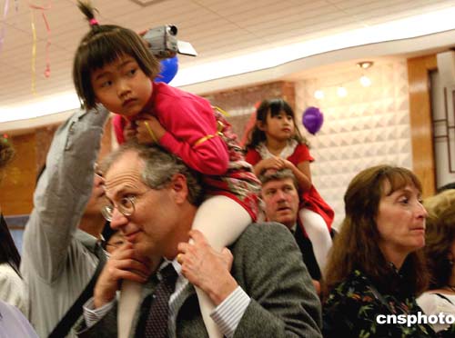 據(jù)美國星島日報報道,10日,一百多個領(lǐng)養(yǎng)中國兒童的美國家庭,獲邀出席了駐舊金山市中領(lǐng)館特別為他們準(zhǔn)備的聯(lián)歡會。中領(lǐng)館總領(lǐng)事彭克玉會上向這些家庭表示了感謝,并指出,今年已經(jīng)是中領(lǐng)館第六年舉辦這樣的活動,而自從13年以前中國通過領(lǐng)養(yǎng)法并與國際法規(guī)接軌以后,在過去的十年間,已經(jīng)超過5萬個中國兒童被領(lǐng)養(yǎng),當(dāng)中80%的領(lǐng)養(yǎng)家庭來自美國。