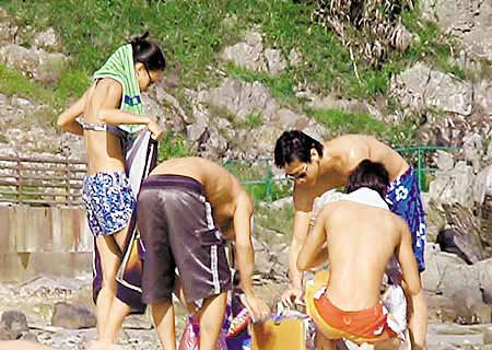 比基尼美女卻沒好氣地自顧自下水,撇下幾位猛男留在沙灘上繼續(xù)享受陽光,3個(gè)男人沒看美女又無美女看他們,舒適地在沙灘享受陽光,不過隔了一會(huì)卻被他們發(fā)現(xiàn)有記者,他們便實(shí)時(shí)收拾行裝撤退,打消了曬太陽的雅興。