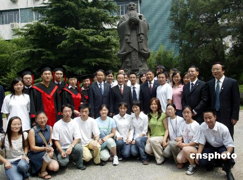 新黨主席郁慕明一行與中國人民大學(xué)學(xué)生們?cè)诳鬃酉袂昂嫌。作者:史?br/>