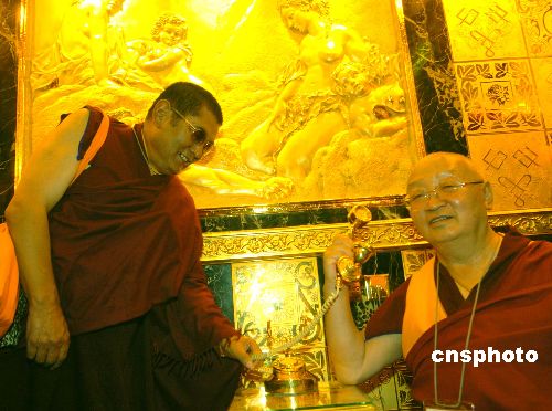 在香港參加中國西藏文化周的西藏活佛一行18日來到金至尊金洗手間。
