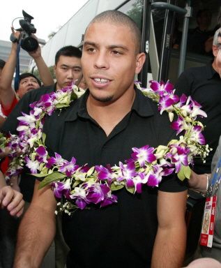 北京時(shí)間7月20日凌晨,西甲豪門(mén)球隊(duì)皇家馬德里飛抵北京,開(kāi)始對(duì)中國(guó)進(jìn)行為期四天的訪問(wèn)。圖為羅納爾多帶上中國(guó)方面獻(xiàn)上的花環(huán)。