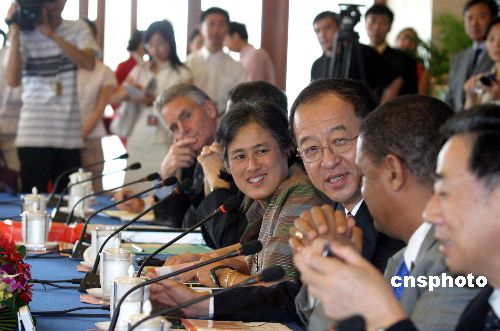 七月二十一日,世界漢語大會進入第二天,在北京飯店第一分會場,國家對外漢語教學(xué)領(lǐng)導(dǎo)小組副組長、國務(wù)院僑辦副主任劉澤彭同與會各國政要熱情交談。作者:張勤