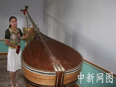 新疆喀什疏附縣吾庫薩克鄉(xiāng)中國新疆民族樂器村,鎮(zhèn)村之寶全長3.39米的熱瓦甫、4.7米的都塔爾、4.95米的沙塔爾三件巨型樂器,已經(jīng)申報吉尼斯紀錄.