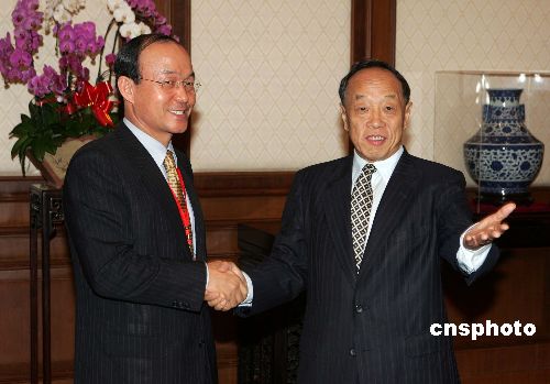 中國外交部長李肇星會(huì)見并宴請(qǐng)前來出席朝核問題六方會(huì)談的韓國外交通商部次官補(bǔ)宋旻淳。作者:毛建軍