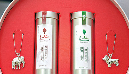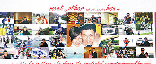 她的喜帖設(shè)計(jì)別致,中央有兩人臉頰相貼的心型圖案,上、下則寫(xiě)有“meet my other half, Mr. and Mrs. hsu”(遇見(jiàn)我的另一半,許氏夫婦)和“many thanks to those who share the wonderful moments in our life”(非常感謝大家分享我們生命中的美好時(shí)光),照片場(chǎng)景包括滑雪與海中浮潛,季節(jié)有春、夏、秋、冬,每張兩人幾乎都是緊緊相擁,署名中她已自稱是許太太。