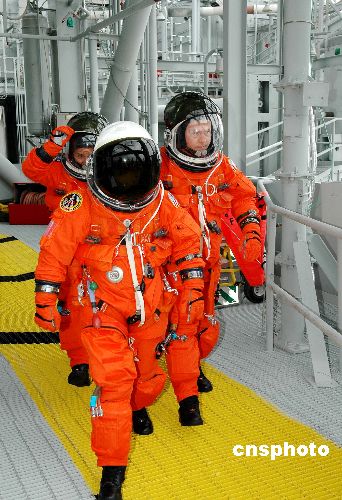 圖:“發(fā)現(xiàn)號”機組人員進入太空艙