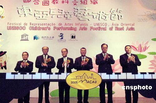 “聯(lián)合國教科文組織東亞兒童藝術(shù)節(jié)”,廿八日在澳門文化中心揭幕,有來自中國、日本、朝鮮、韓國、蒙古及澳門、香港等國家和地區(qū)兒童代表五百多人參加,澳門特區(qū)行政長官何厚鏵、聯(lián)合國教科文組織總干事松浦晃一郎等主持開幕式。作者:梁永強(qiáng)