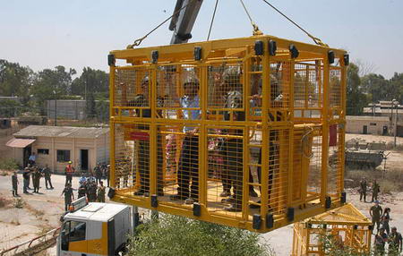扮演拒不撤離的猶太定居者的警察被關(guān)進鐵籠
