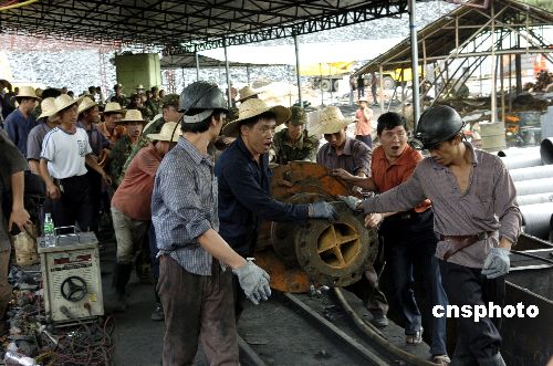 從江西省調(diào)來(lái)的二臺(tái)七百二十五千瓦大功率抽水機(jī)八月九日到達(dá)廣東省興寧事故煤礦,以加快透水事故礦井的抽水進(jìn)度。目前,一百零二名礦工仍被困井下。作者:羅仰明