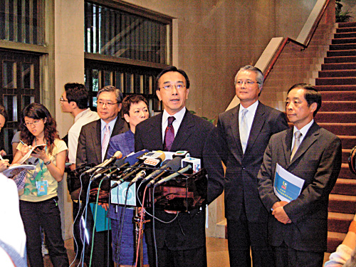 獲安排第一個會見的自由黨向曾蔭權(quán)提及有關(guān)政改、經(jīng)濟(jì)發(fā)展、空氣質(zhì)素等問題,建議增加選委會人數(shù)至一千二百人,選委會選民也應(yīng)由目前的十六萬增至三十二萬。并分別增加五個功能組別及直選席位,分配予專業(yè)界、商界及地區(qū)人士。以及重新考慮參照新加坡做法,興建賭場。