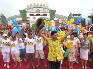 今年開幕式主要裝備也皆為歷屆啤酒節(jié)之冠:最大的木質(zhì)城門,最大的節(jié)旗,最大的啤酒桶,最大的巡游隊(duì)伍,最大的觀禮臺(tái)。其中,本屆特制的節(jié)旗長寬都是十五米,代表本屆啤酒節(jié)是第十五屆。承載上萬游客開啟第一桶酒狂歡的巨型啤酒桶,長四點(diǎn)五米,最高處直徑達(dá)三點(diǎn)五米,要七個(gè)成人手拉手才能合抱過來。巡游隊(duì)伍分為“啤酒之城”、“奧運(yùn)之城”、“浪漫琴島”、“青春活力”、“生活在青島”五個(gè)板塊,共有“可愛吉祥物”、“啤酒寶貝”、外國友人等近二千人。此外,今年的啤酒嘉年華場地面積也是去年的兩倍,新引進(jìn)了來自八個(gè)國家的十七臺(tái)游樂設(shè)備;三十六個(gè)參節(jié)啤酒品牌中有八個(gè)位列世界啤酒十強(qiáng)。