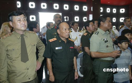 在這個(gè)中國(guó)人民抗日戰(zhàn)爭(zhēng)暨世界反法西斯戰(zhàn)爭(zhēng)勝利六十周年的日子里,坐落在盧溝橋畔宛平城內(nèi)的中國(guó)人民抗日戰(zhàn)爭(zhēng)紀(jì)念館莊嚴(yán)肅穆,參觀的人流穿梭不息。受中國(guó)國(guó)防部外事辦公室的邀請(qǐng)參觀展覽的外國(guó)駐華武官團(tuán)一行在熙熙攘攘的人群中尤為顯眼,他們仔細(xì)觀看一幅幅照片、一件件文物和一處處復(fù)原景觀,認(rèn)真聽取講解人員的英語(yǔ)介紹。