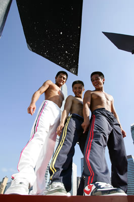 中新網(wǎng)8月16日電 據(jù)香港《大公報》報道,郭富城日前為某運動品牌拍攝廣告,名為“三城主義”,內(nèi)容是三個形態(tài)十分相似的型男,在一個天臺擂臺“比舞”,演繹一種現(xiàn)在歐美巴西十分流行的CapoeiraDance(卡波耶拉舞),以手腿相碰作翻騰,跳出極具動感線條優(yōu)美之舞動動作。