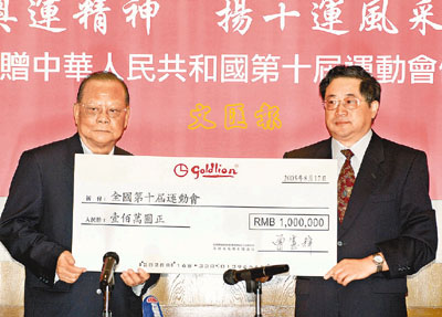 中新網(wǎng)8月18日電 據(jù)香港文匯報(bào)報(bào)道,全國人大常委、香港金利來集團(tuán)主席曾憲梓,17日向第10屆全國運(yùn)動會組委會捐款100萬元人民幣,以實(shí)際行動支持江蘇省舉辦全國運(yùn)動會。