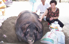動(dòng)保團(tuán)體又說,豬只一旦下窟后,就是強(qiáng)迫灌食的開始,甚至有飼主為了方便灌食,在喂食時(shí)會(huì)有用一根長(zhǎng)而粗的竹竿,綁在豬只上面,緊壓豬只背部,讓豬更加無法動(dòng)彈,最后神豬比一般豬只還要肥10倍,還得心臟病。