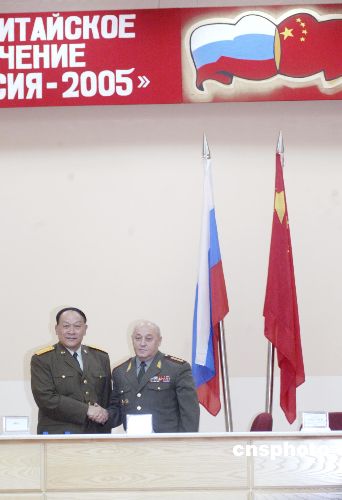 八月十八日,中國人民解放軍總參謀長梁光烈上將(左)和俄羅斯聯(lián)邦武裝力量總參謀長巴魯耶夫斯基大將,在位于符拉迪沃斯托克的俄羅斯太平洋艦隊共同宣布,“和平使命—2005”中俄聯(lián)合軍事演習正式開始。此次聯(lián)合軍事演習,圍繞共同打擊國際恐怖主義、極端主義和分裂主義,應(yīng)對各種危機,主要演練戰(zhàn)略磋商與戰(zhàn)役籌劃、兵力投送與展開、實施交戰(zhàn)三個訓(xùn)練問題。演習跨越兩國陸、海、空域,參演軍兵種齊全,演練科目較多。作者:王麗南