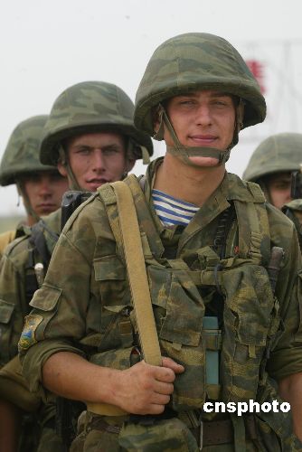 8月20日,中俄聯(lián)合軍事演習第二階段在中國青島開始,第二階段主要演練投送與展開、調整決心和組織協(xié)同,中俄雙方參演兵力近萬人。圖為參加中俄聯(lián)合軍事演習的俄羅斯空降兵在演練場上集結的情景。作者:王麗南