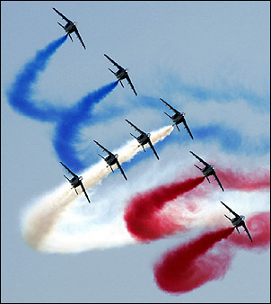 中新網(wǎng)8月21日電 據(jù)法新社報(bào)道,在朱科夫斯基舉行的本年度莫斯科國際航空展上,法國空軍特技表演隊(duì)“法蘭西巡邏兵”特技飛行表演隊(duì)正在展示他們令人叫絕的空中表演技術(shù)。