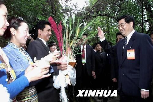 在走過“和平解放”和“民主改革”14年歷程之后,以1965年9月1日西藏自治區(qū)成立為新的歷史起點,西藏人民在中國共產(chǎn)黨的英明決策和正確領(lǐng)導(dǎo)下,走上了光明的發(fā)展大道。西藏自治區(qū)40年輝煌成就的取得,凝聚著以毛澤東、鄧小平、江澤民同志為核心的黨的三代中央領(lǐng)導(dǎo)集體和以胡錦濤同志為總書記的新一屆中央領(lǐng)導(dǎo)集體的心血。