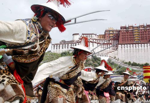 圖:西藏自治區(qū)成立四十周年游行彩排在拉薩舉行