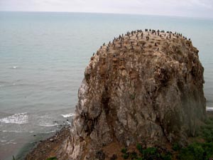 | 著名的青海湖鳥島由鸕鶿島和蛋島兩部分組成,每年春天,數(shù)以10萬(wàn)計(jì)的普通鸕鶿、斑頭雁、棕頭鷗、魚鷗、燕鷗、大天鵝等十幾種鳥,從印度、盂加拉灣、恒河口、吉大港等地經(jīng)過(guò)數(shù)千公里的長(zhǎng)途飛翔,成群結(jié)隊(duì)從南方飛來(lái),棲居島上。它們各自選擇舒適的地方,筑巢安家,求偶產(chǎn)卵,孵育雛鳥,鳥群此起彼落,把島遮蓋得嚴(yán)嚴(yán)實(shí)實(shí)。圖為鸕鶿島東側(cè)的由一片懸崖峭壁組成的“鸕鶿城堡”。