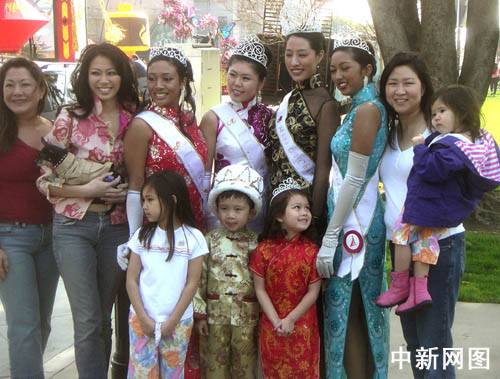 美國洛杉磯二00六年華埠小姐和華埠小皇帝、小皇后一起與華人華僑歡聚狗年。作者 賈國榮