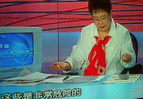 2004年3月29日,張越在主持中央電視臺一套《半邊天》節(jié)目時戴了一條印有類似日本國旗的圍巾,節(jié)目播出后被觀眾投訴。最后,央視國際網(wǎng)絡(luò)不得不出面澄清,以平息網(wǎng)友眾怒。
