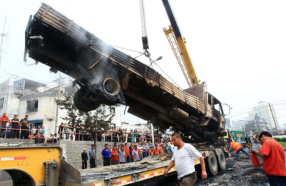 7月6日,烏魯木齊市的工作人員在清理被犯罪分子焚燒的汽車。在5日晚發(fā)生的嚴(yán)重暴力犯罪事件中,已造成140人死亡,800多人受傷;被毀車輛達(dá)260部;受損門面房203間,民房14間,總過火面積達(dá)到56850平方米,全市共有220多處縱火點(diǎn),有兩棟樓房被燒毀。中新社發(fā) 劉新 攝