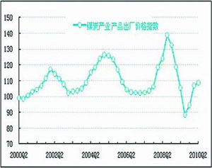 煤炭產(chǎn)業(yè)產(chǎn)品銷售收入隨著宏觀經(jīng)濟(jì)形勢(shì)的好轉(zhuǎn),連續(xù)5個(gè)季度攀升,其同比增長(zhǎng)速度大幅上揚(yáng)后有所回落。隨著夏季用電高峰的到來(lái),煤炭需求增多,將推動(dòng)煤炭銷售收入的上升。預(yù)計(jì)2010年煤炭產(chǎn)業(yè)產(chǎn)品銷售情況將持續(xù)向好。
